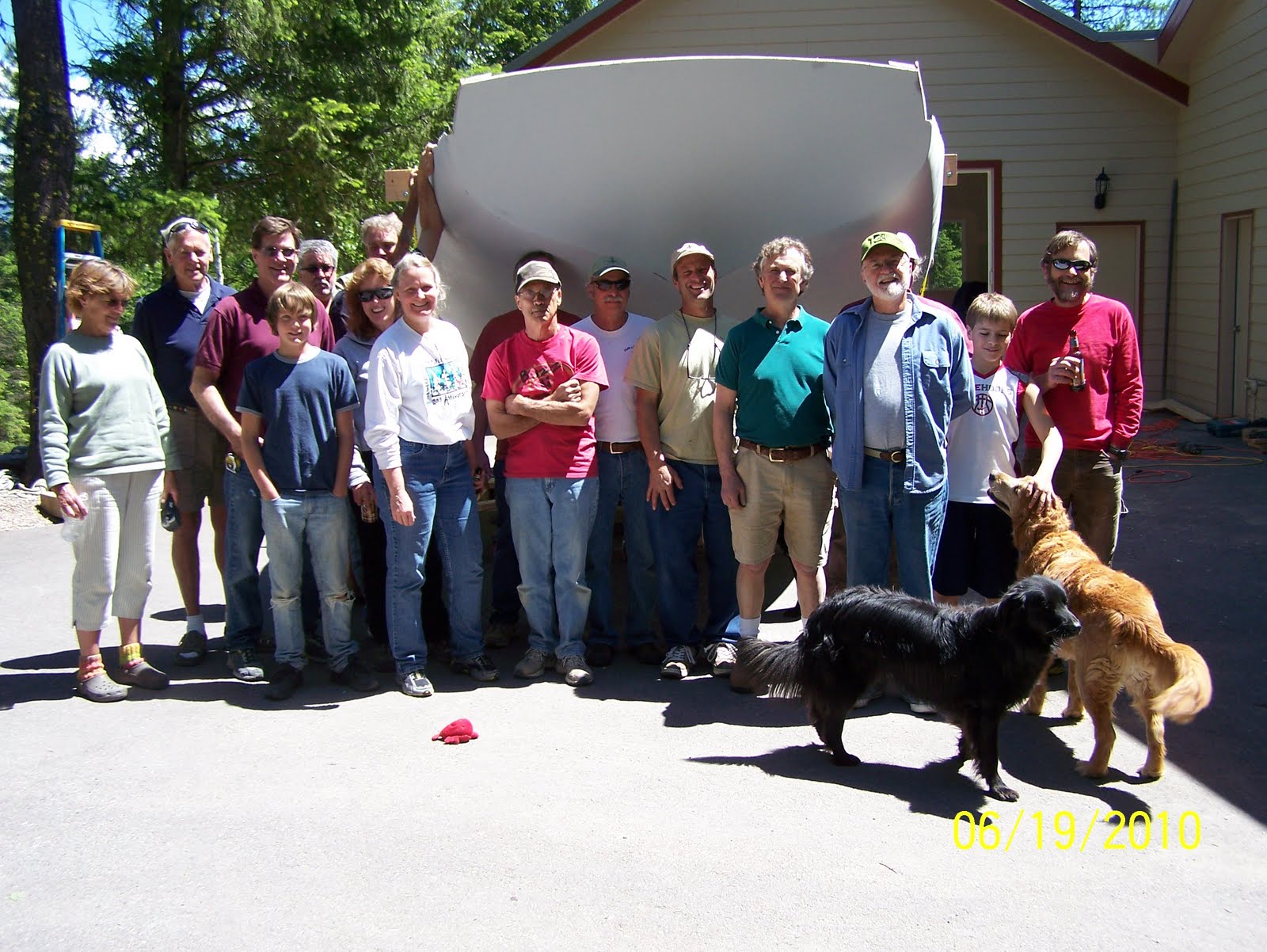 Of course there were last minute measurements and adjustments. The cradle had to lowered (rebuilt) and the stem trimmed so that she would clear the top of the door on her way back through the garage door. Theoretically at least.....one never knows how well this will work until the big day, and everyone is watching. There was a short episode of cold feet regarding having an audience for the whole episode. But a party was called for....and people were invited.